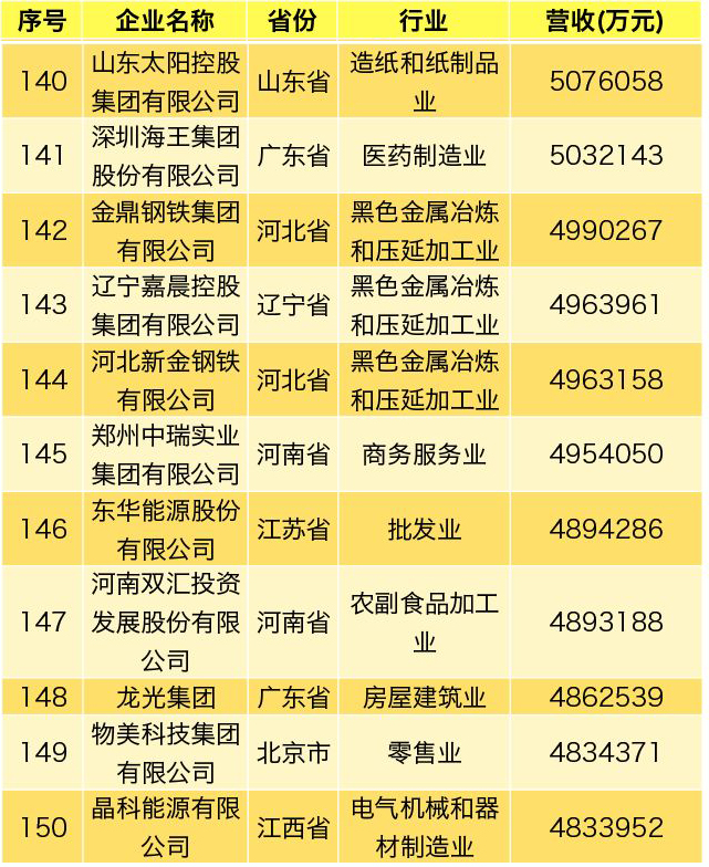 8月22日,2019中國民營企業500強峰會在青海省西寧市召開,峰會上發布了中國民營企業500強榜單,遼寧嘉晨控股集團有限公司榜單排名第143位, 2019中國民營企業制造業500強榜單排名第77位。