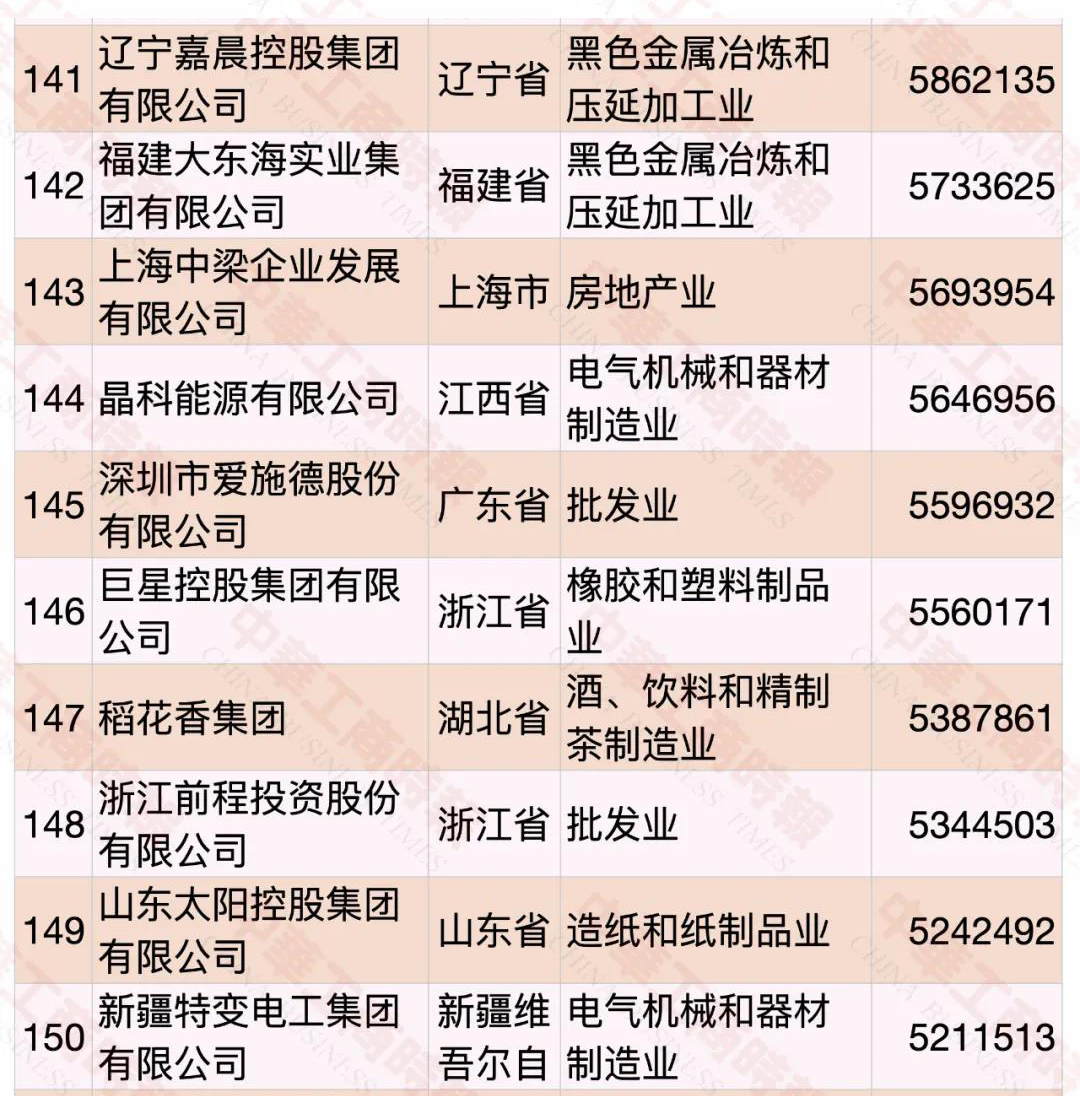 嘉晨集團在2020中國民營企業500強排名141位