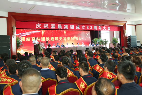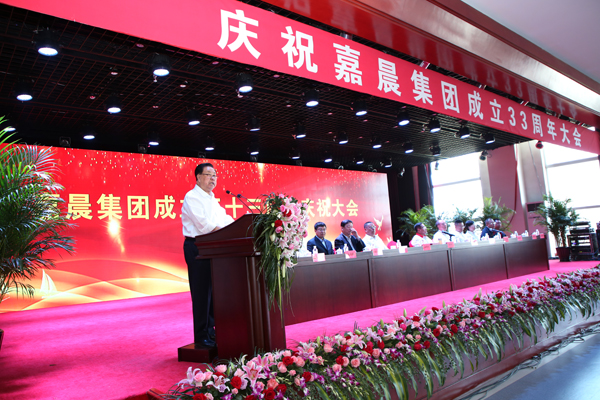 活動一開始,由董事長孫壽寬發表了激動人心的講話。他指出,33年前我們在一個雜草叢生、滿目荒涼的一個小山坡的廢墟上,開始了我們嘉晨人的創業歷程。33年來,我們以不屈不撓的奮斗使這個企業飛躍的向前發展壯大。33年來,我們始終堅持奮斗、誠信、發展、富強的宗旨和遵循以人為本、科學發展的理念。經過全體嘉晨人33年不懈的奮斗,我們從小到大,從弱到強,發展到今天我們已經成為有職工近萬人,總資產650多億元的跨行業、跨地區的國家級大型企業集團。