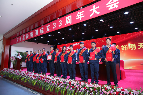 董事長講話結束后,集團總裁孫朝英宣布了集團表彰決定。他指出,嘉晨集團在董事長的英明、堅強領導下,戰勝了一個又一個困難,創造了一個又一個奇跡。公司的迅猛發展,離不開那些忠心耿耿、敢為人先、迎難而上、業績突出的廣大干部職工。值此集團33歲生日之際,集團對各類勞動模范共計1450人給予通報表彰,并投入300多萬元購置獎品。此次表彰人數為公司歷次評選表彰人數之最,這說明了公司目前良好的經營形勢和雄厚的資金實力,同時也體現了董事長對大家的一片感激和關愛之情。希望受到表彰和獎勵的同志戒驕戒躁,繼續加倍努力工作,不要辜負這份榮譽和董事長對大家寄予的殷切期望,為公司的強勁持續發展繼續貢獻自己的力量。