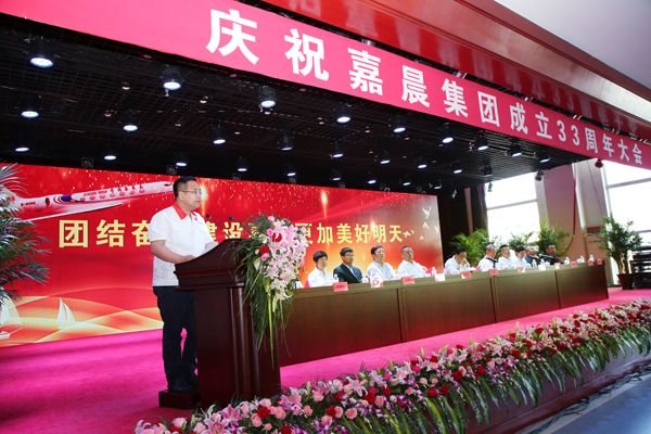 6月18日上午,嘉晨集團中層以上領導,部分勞模代表,集團機關、各公司機關及部門負責同志,各廠廠長、車間主任、工段長、沈陽、大連等地辦事處負責同志,共計1000余人歡聚一堂,共同見證嘉晨集團33年的輝煌歷程!集團副董事長孫路新主持慶祝活動。